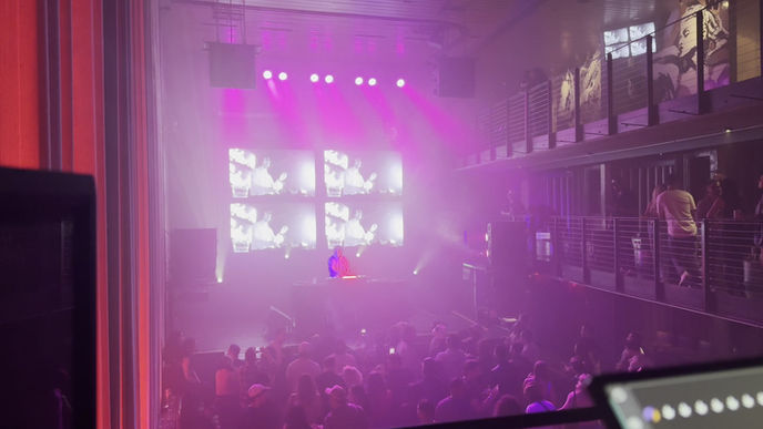 I was hired at Music Box in April 2024, and usually busk 2-3 shows per month depending on what they need. They have a great and simple setup, with only 8 Martin Mac Auras, 8 Chauvet 2k Spots, and 4 Elation Saturas in the air, 4 Martin Mac's for side light, and 4 Chauvet 2k Spots on the back wall beneath the LED screen. I also created a 3D version to program scenes and cues at home.